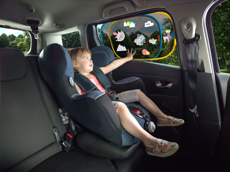 + leuke set speelstickers die de kindjes altijd op en af de zonnescherm kunnen halen